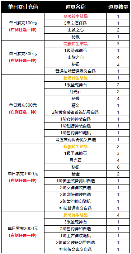 5. 单日累计充值奖励可进行拼叠,如,单日累计充值1500元可选择单日累计充值1000元奖励×1、单日累计充值300元奖励×1、单日累计充值100元奖励×2。(为了避免不必要的麻烦,建议您充值后次日联系客服)。