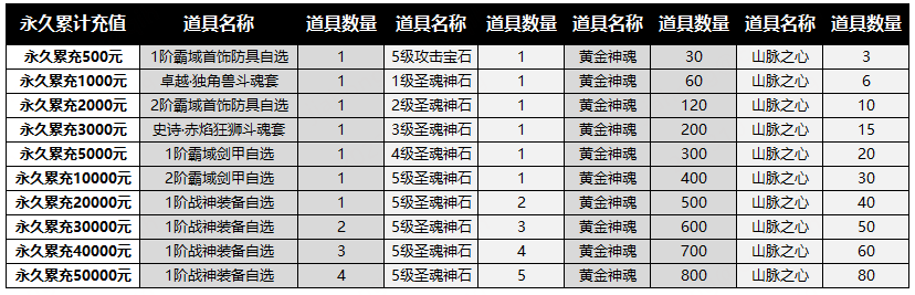4. 本活动以游戏内单角色充值金额为准,计算角色充值而不是账号充值,永久累充奖励单角色仅能参与一次。